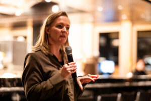 Als gastspreker voor de dinerbijeenkomst was dit jaar Marietje Schaake uitgenodigd. Schaake, onder meer verbonden aan Stanford en auteur van De Tech Coup, sprak over de invloed van techbedrijven en de staat van de democratie. Ze daagde de aanwezigen uit de digitale ontwikkelingen te bezien door de bril van macht.
